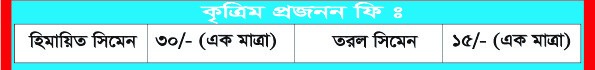 তরল সিমেন দ্বারা কৃত্রিম প্রজনন ফি --- ১৫ টাকা